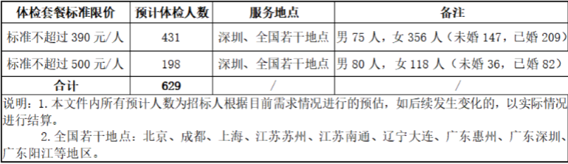 见《深圳市鹏劳人力资源管理有限公司2023年度外派员工健康体检服务采购项目招标文件》(附件2)