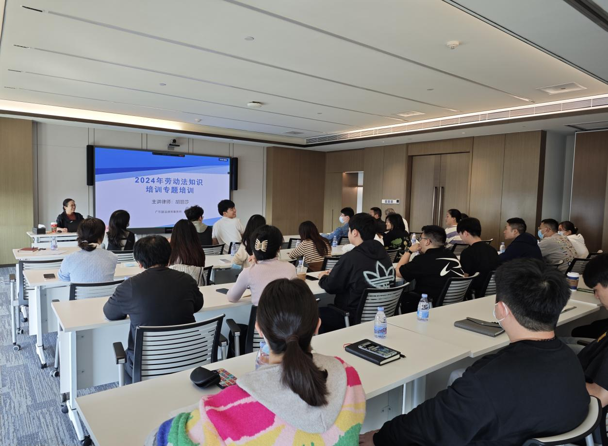 为持续丰富员工有关劳动用工法律法规知识,帮助大家理清和解答在实际工作中遇到的用工关系涉及法务处理问题,不断促进提升员工业务技能和管理服务水平。2024年1月19日下午,鹏劳公司在中国人保金融大厦49楼开展了2024年劳动法实务培训专题讲座,公司各部门、杰库子公司员工参加了培训,广州及惠州分公司以线上方式开展。