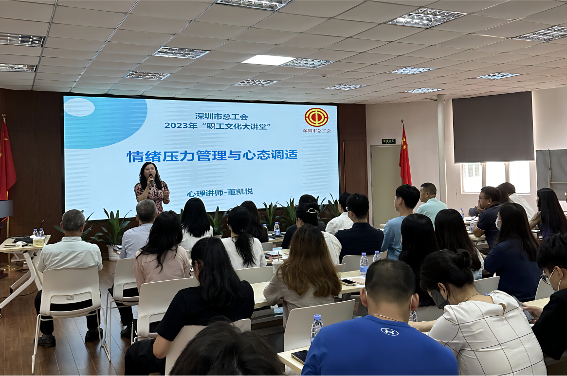 此次培训邀请国家执业心理咨询师、中科院高级EAP讲师、市总工会文化大讲堂讲师董凯悦老师授课,董老师从情绪的探索与应对、压力的识别与管理、积极心态的调适等方面,如何识别自身面临的各种压力与表现进行讲解,深入浅出与大家分享她对压力情绪管理与心态调适技巧,提出了心理应对技术建议,引导大家调整情绪接纳自我,提升积极心态。