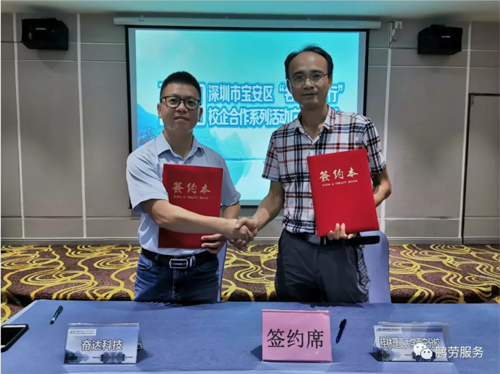 ▲学校代表与宝安区企业代表签署《校企合作框架协议》